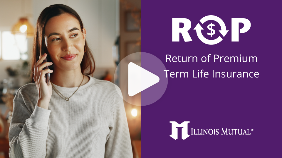 Illinois Mutual’s Return of Premium Term is available for death benefits of $50,000 to $500,000 and initial terms of 20 years, 30 years or To Age 65*. Issue ages are 18 to 60; however, term length availability will vary by age and tobacco use. If the policy is in force when the initial term period ends and its terms have been met, 100% of the returnable premium will be paid back to you as an endowment benefit.